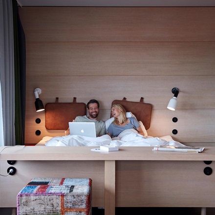 Award-winning inte­rior desi­gners, Studio Aiss­li­nger from Berlin, created a unique envi­ronment for this charming bout­ique hotel in Stoc­k­holm. With 201 rooms, modern design and funct­i­o­n­a­lity come together in style at the Hobo. Design knobs from the classic Berker R-series add elegance and high quality to provide small details with a big impact.